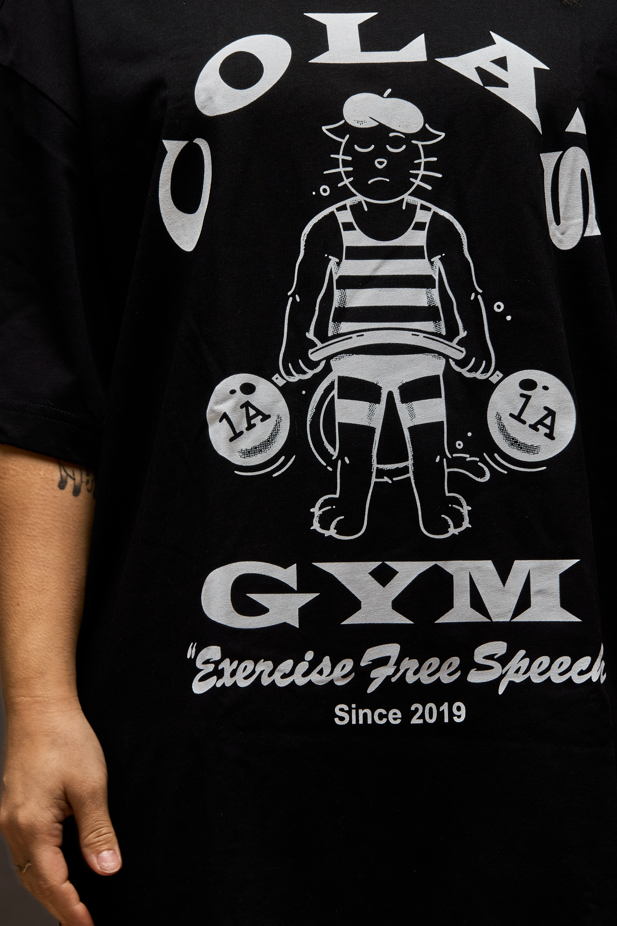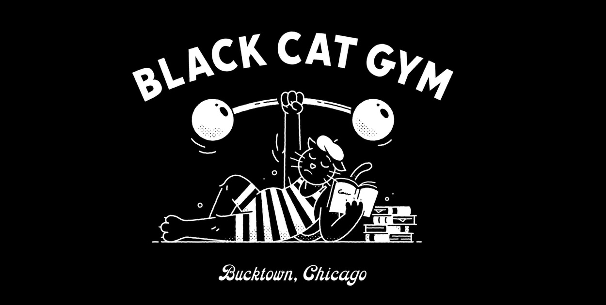 I re-imagined the Black Cat Gym concept as Cola's Gym, which in Cola Athletic features on a tee, muscle crew, and sports bra.