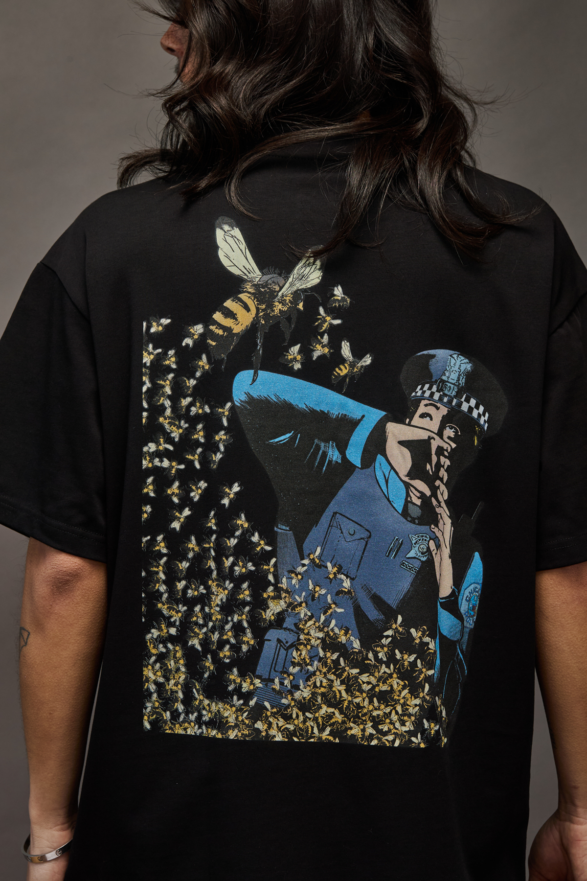 Well, things get a lot clearer when you see the backs of the tees, especially the Bee design.