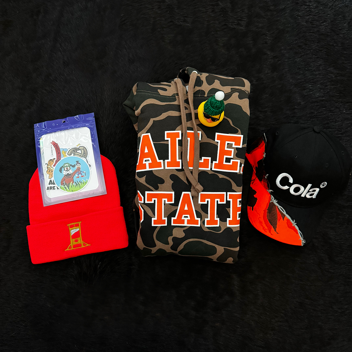 It has a few of my favorite pieces from 2025, including the Duck Camo Failed State hoodie, and the Realtree x Cola cap with embroidered barbed wire and Realtree hunter-orange camo.
